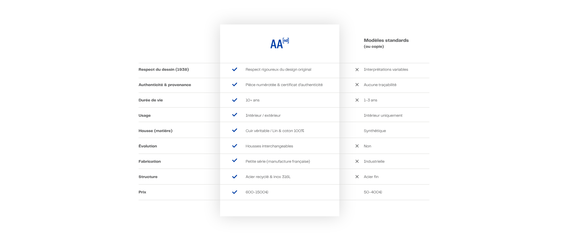 Chez AA[nd], nous réinterprétons l’iconique fauteuil AA Butterfly© avec une exigence particulière : une fabrication 100% française, des matériaux premium et un savoir-faire qui conjugue artisanat et industrie. Chaque fauteuil est pensé pour traverser le temps, grâce à des finitions durables, des pièces réparables et une attention au détail qui en fait une pièce à la fois unique et intemporelle.